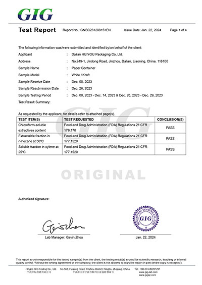 森林管理委员会认证,证明纸包装(纸杯、纸袋等)所用木材纤维来自可持续管理森林,契合食品包装行业环保采购需求,彰显供应链绿色合规性。